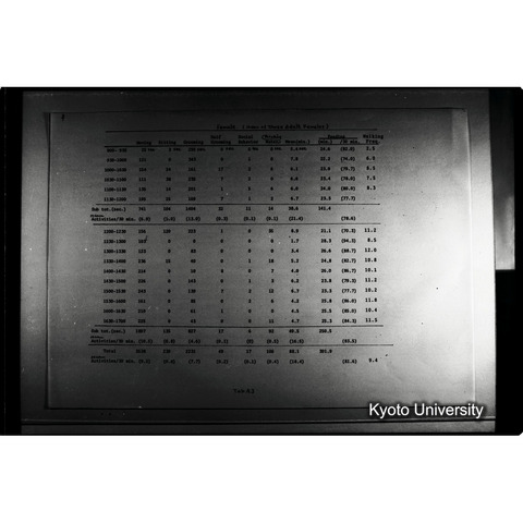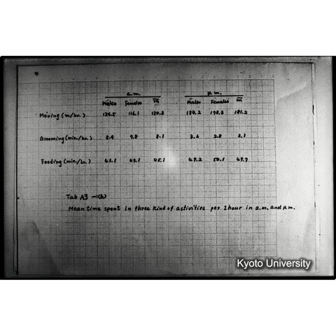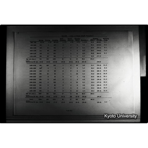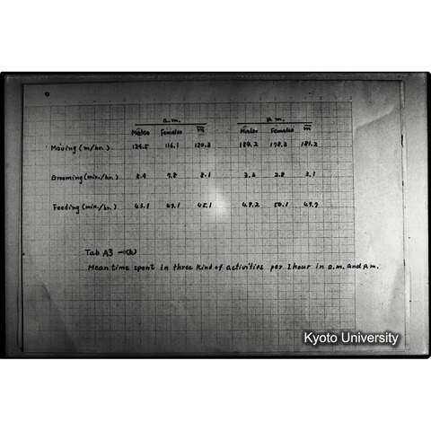 - 本資料の原本は, 閲覧できない. またデジタルデータの一部は,倫理的問題および資料作成者の希望から閲覧に特別な申請を要する.本デジタルコレクション収録画像等の出版物・展示等を目的とする複製使用の許可については, 京都大学総合博物館の長へ連絡すること. (注意)本デジタルコレクションは京都大学研究資源アーカイブ事業の研究資源化公募へ理学研究科より申請書が提出され採択されたことで構築されたが, 資料実物は理学研究科に保存されていない. 本デジタルコレクションは, 資料原所蔵者である河合雅雄氏より総合博物館員が許諾を得て, 研究資源化プロジェクト関係者が構築作業を進めた. よって, 本デジタルコレクションやそのもととなった資料実物については, 理学研究科ではなく総合博物館へ照会されたい.